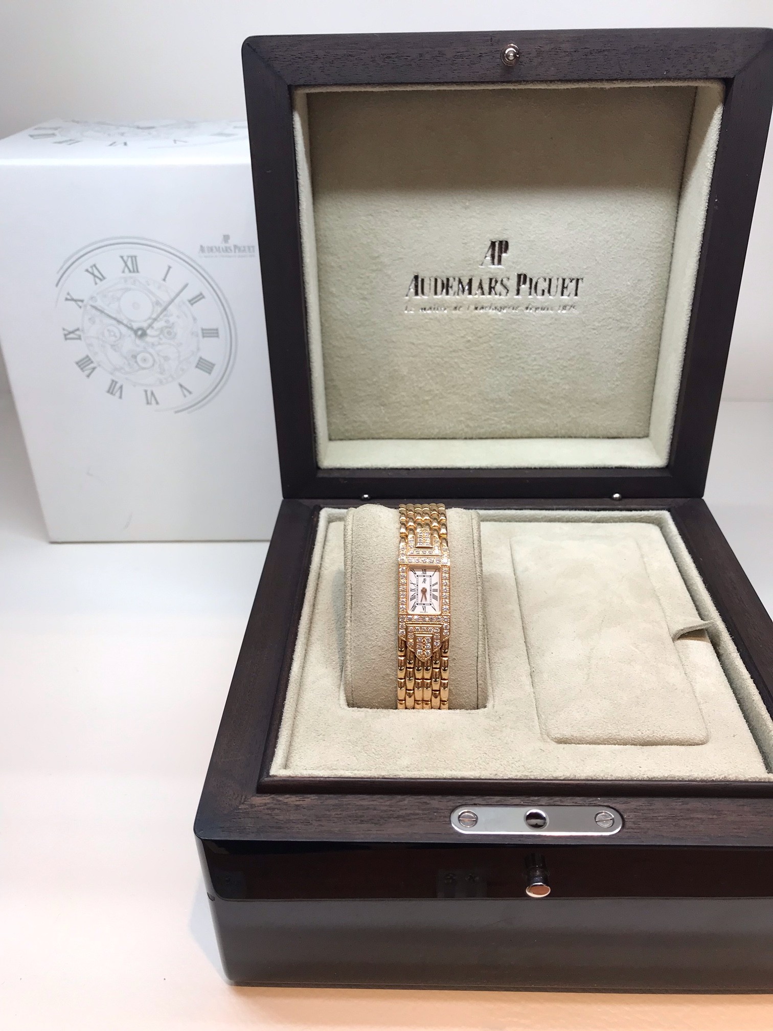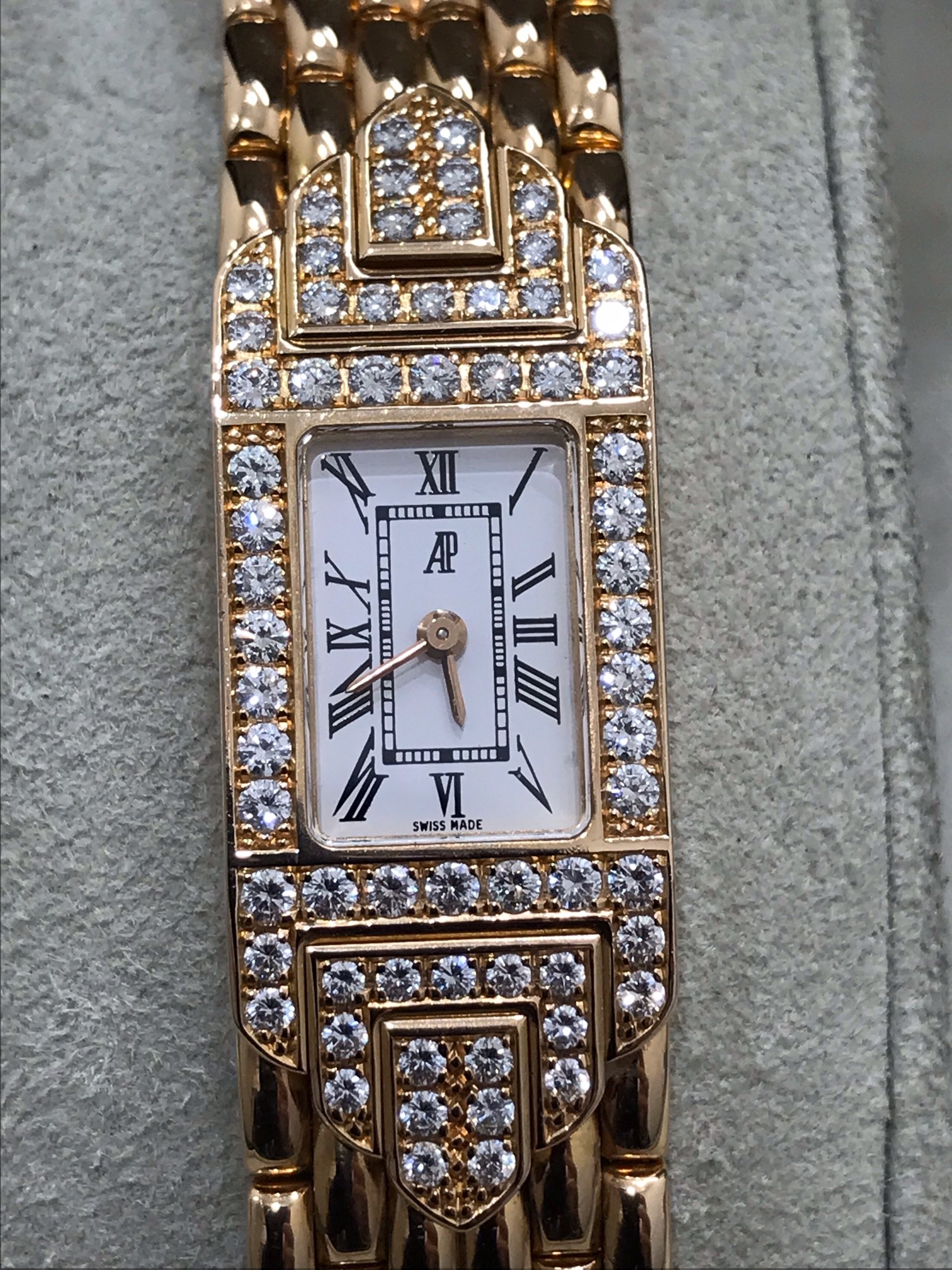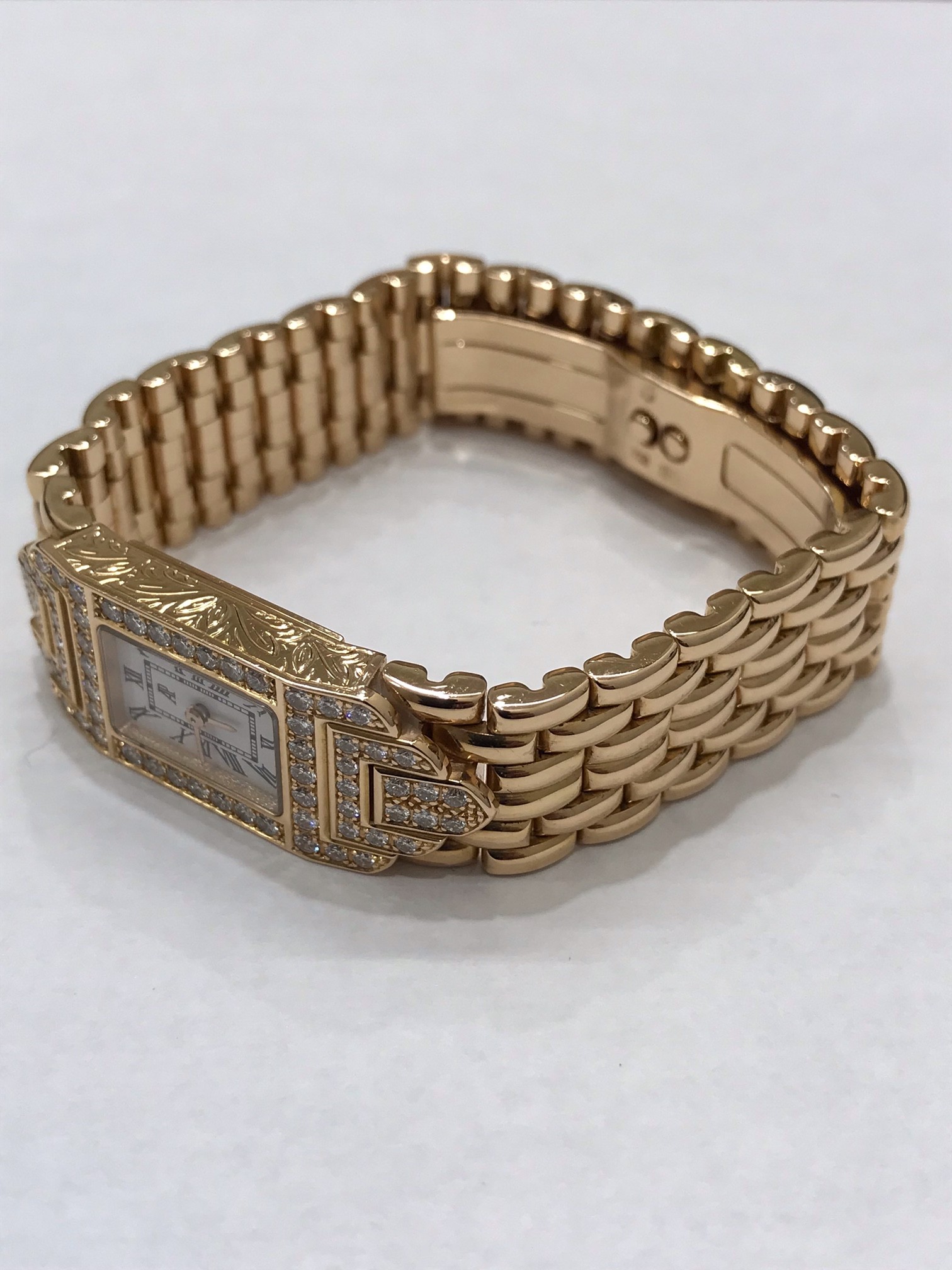 イエローゴールドのケースに贅沢にあしらわれたダイヤモンド、