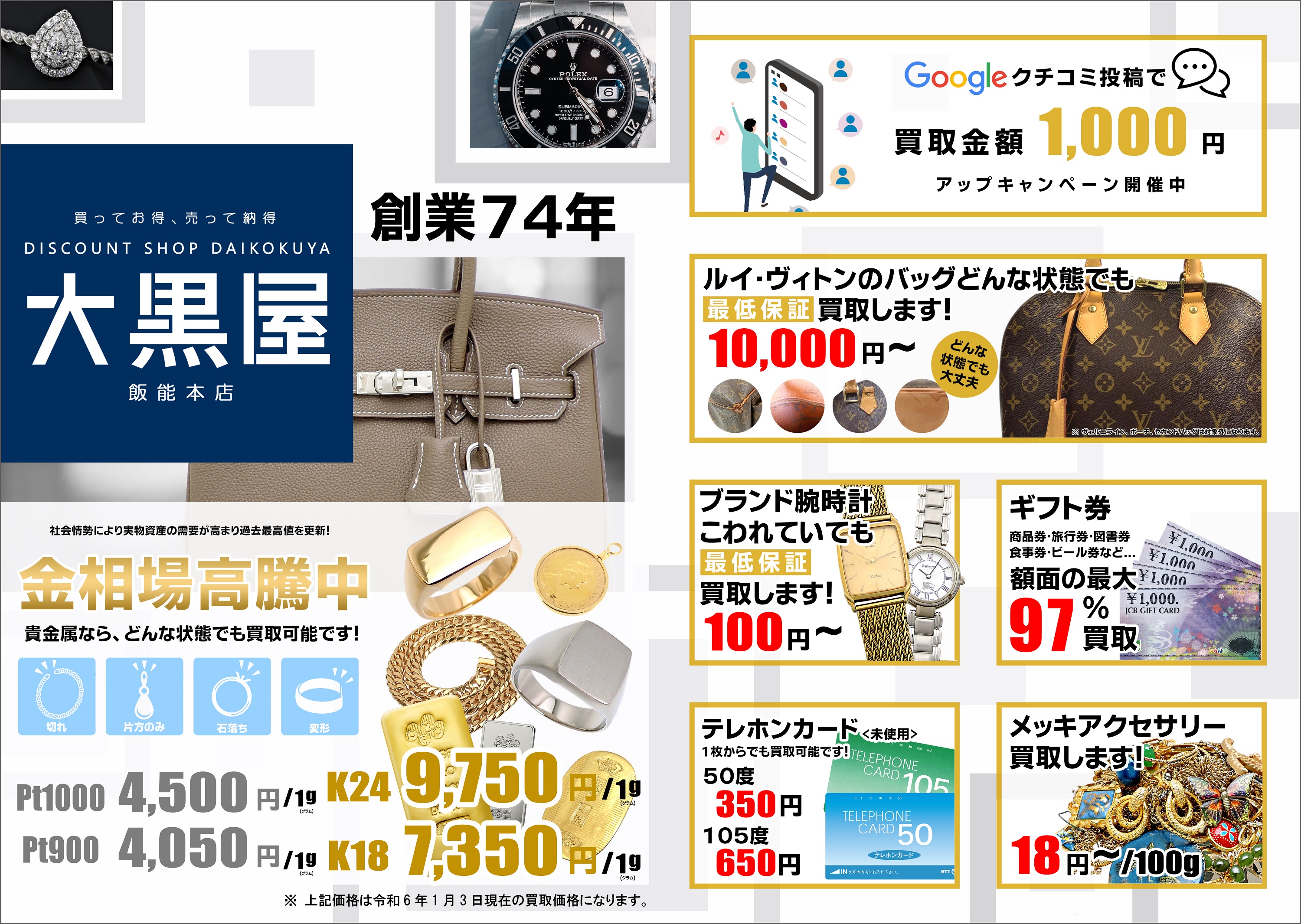 さて今回は飯能店より買取チラシのご案内で御座います。