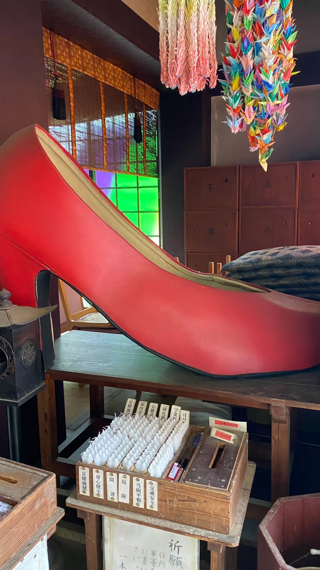 他にも、巨大わらじ、巨大夫婦ゲタ、巨大ハイヒールも有り、巨大ハイヒールは、とあるテレビ番組の企画で「和田アキ子のハイヒール」として寄贈されたとの噂ですが、正確な所は、ただいま調査中です((´∀`))ケラケラ