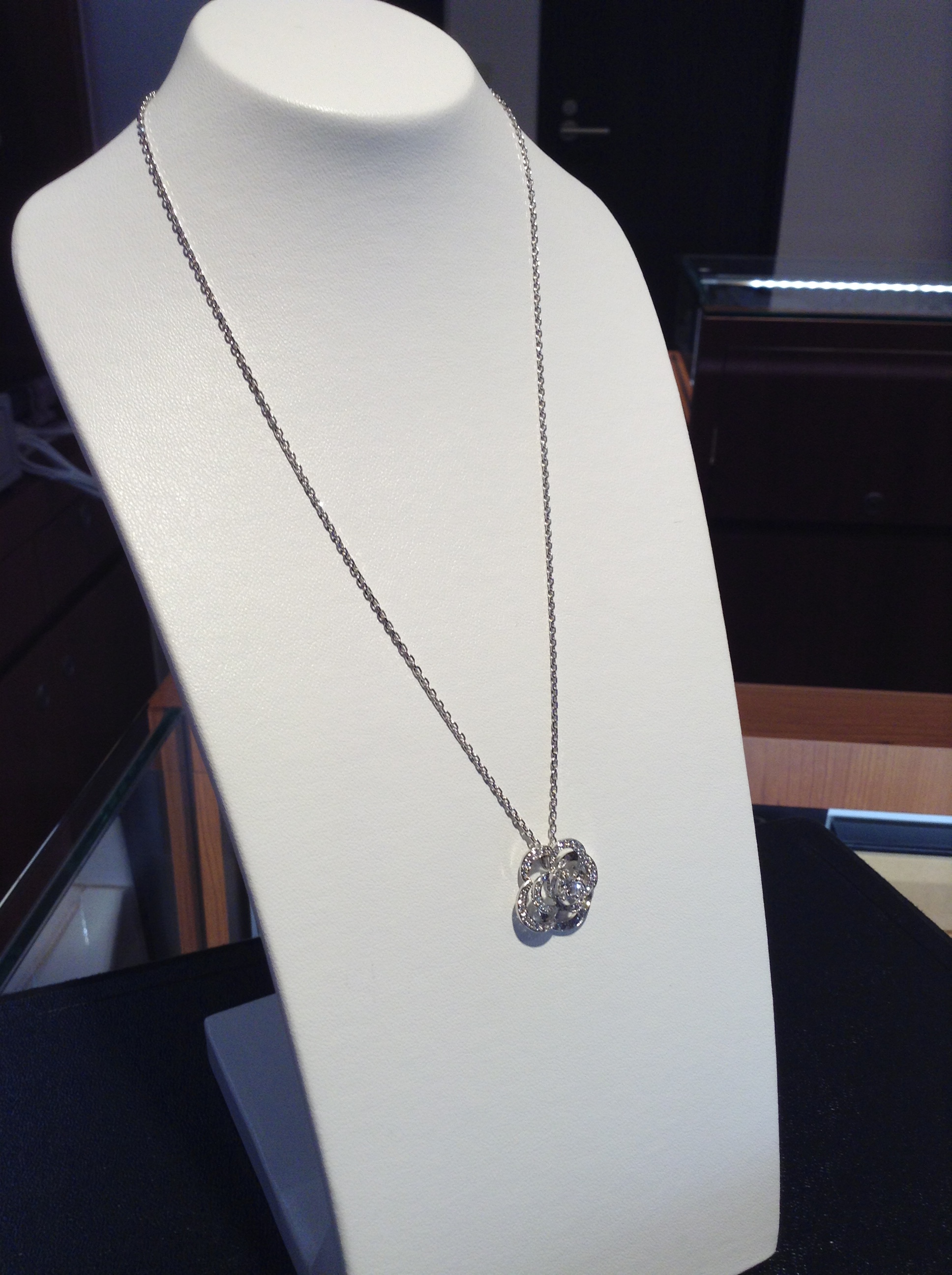 今回はシャネルのカメリアダイヤネックレスを買い取りさせて頂きました。