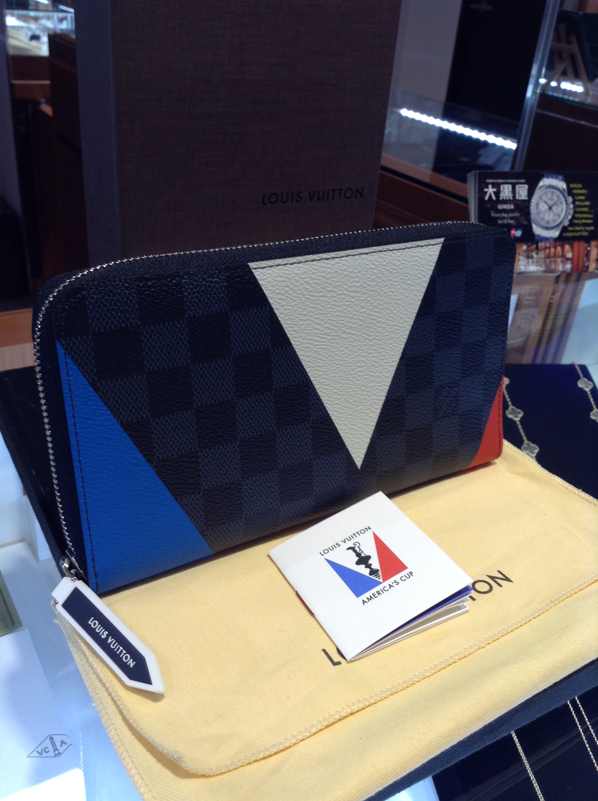 今季2016年の春夏コレクションで第35回アメリカズカップ(ヨットレース)記念モデルとして発表された新作で爽やかなカラーのダミエコバルトにルイヴィトンの『V』をイメージしたペイントを施し、スポーティな印象に仕上がっております。