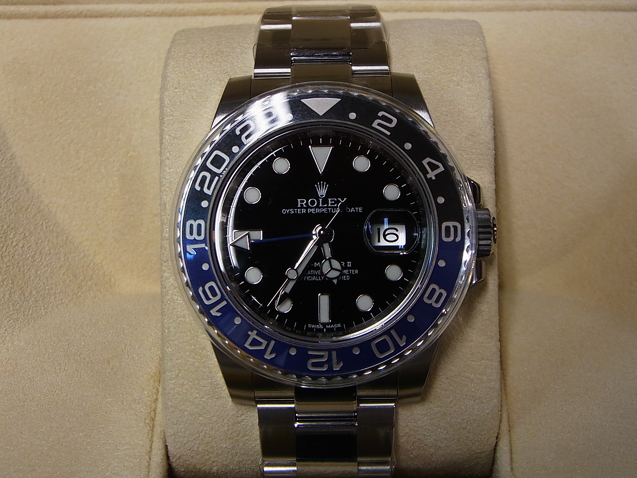 もう一点は新品の「ロレックス GMTマスターⅡ 116710BLNR」です。