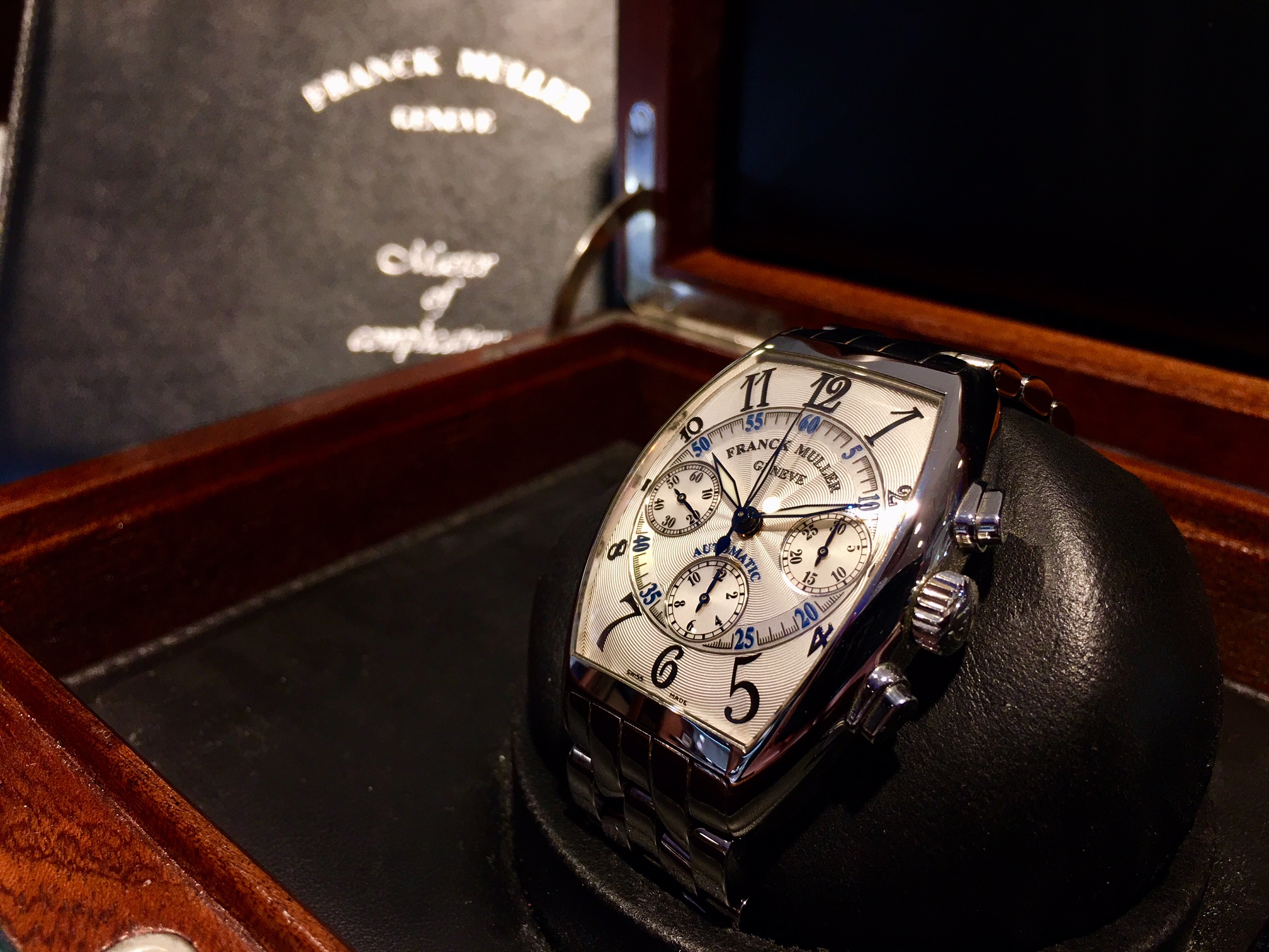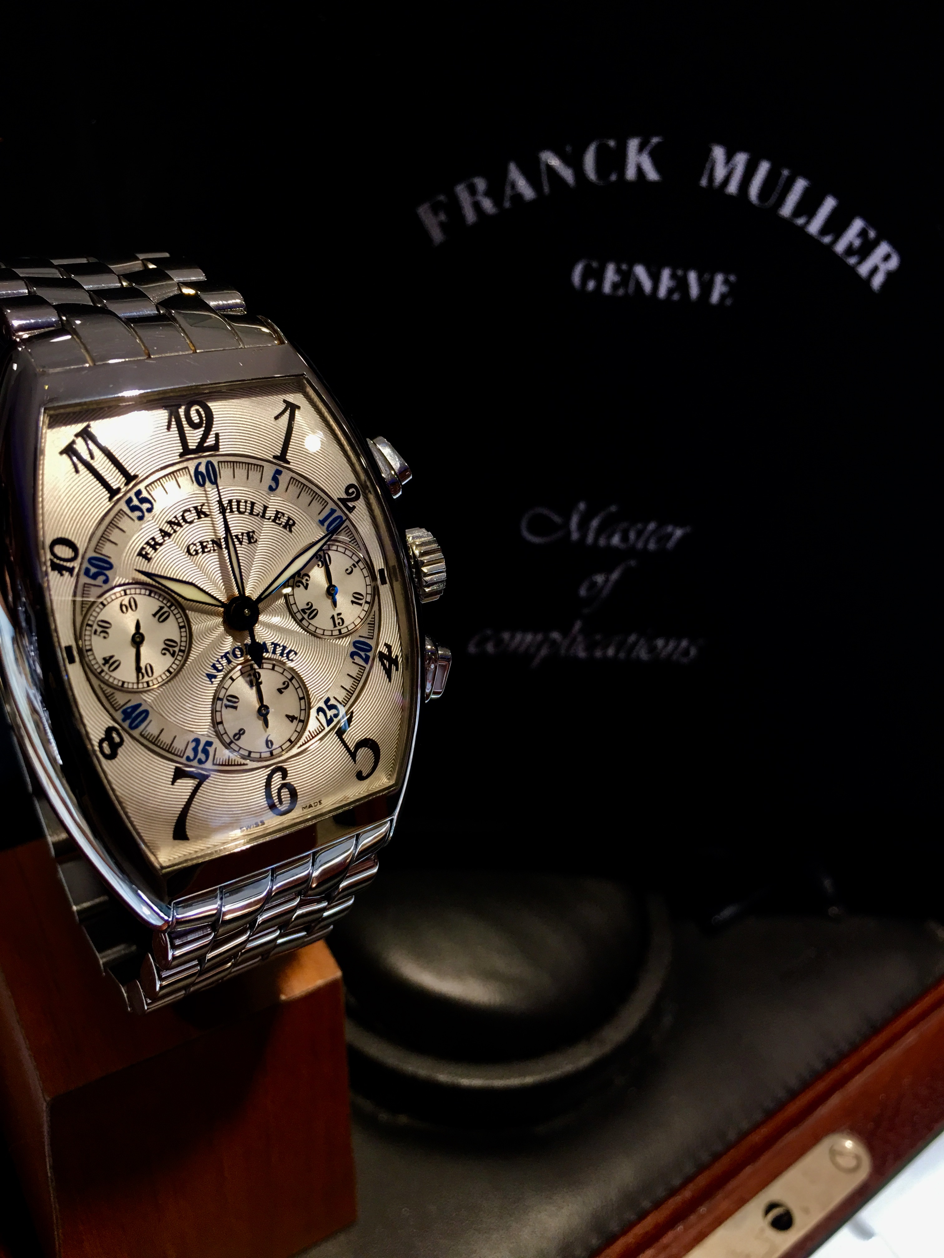 フランクミュラーならではの曲線が美しいトノーカーベックスのクロノグラフ搭載モデルです!