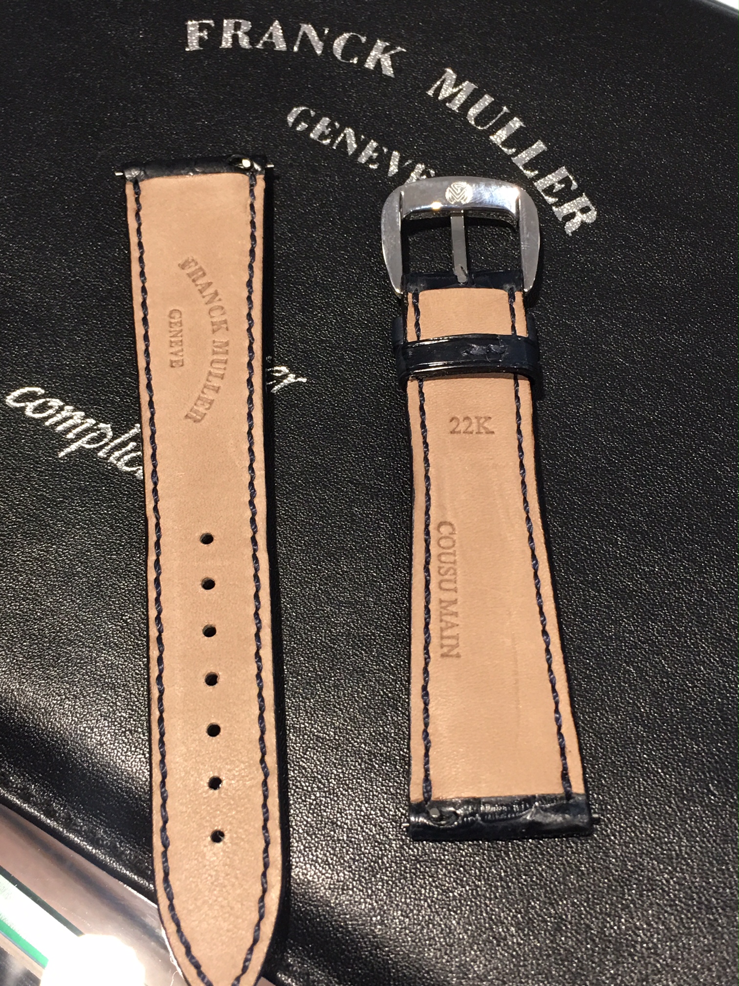 さらに今回買取のお品は国内正規ギャランティーに加え、フランク・ミュラー純正の革ベルトもついております!!