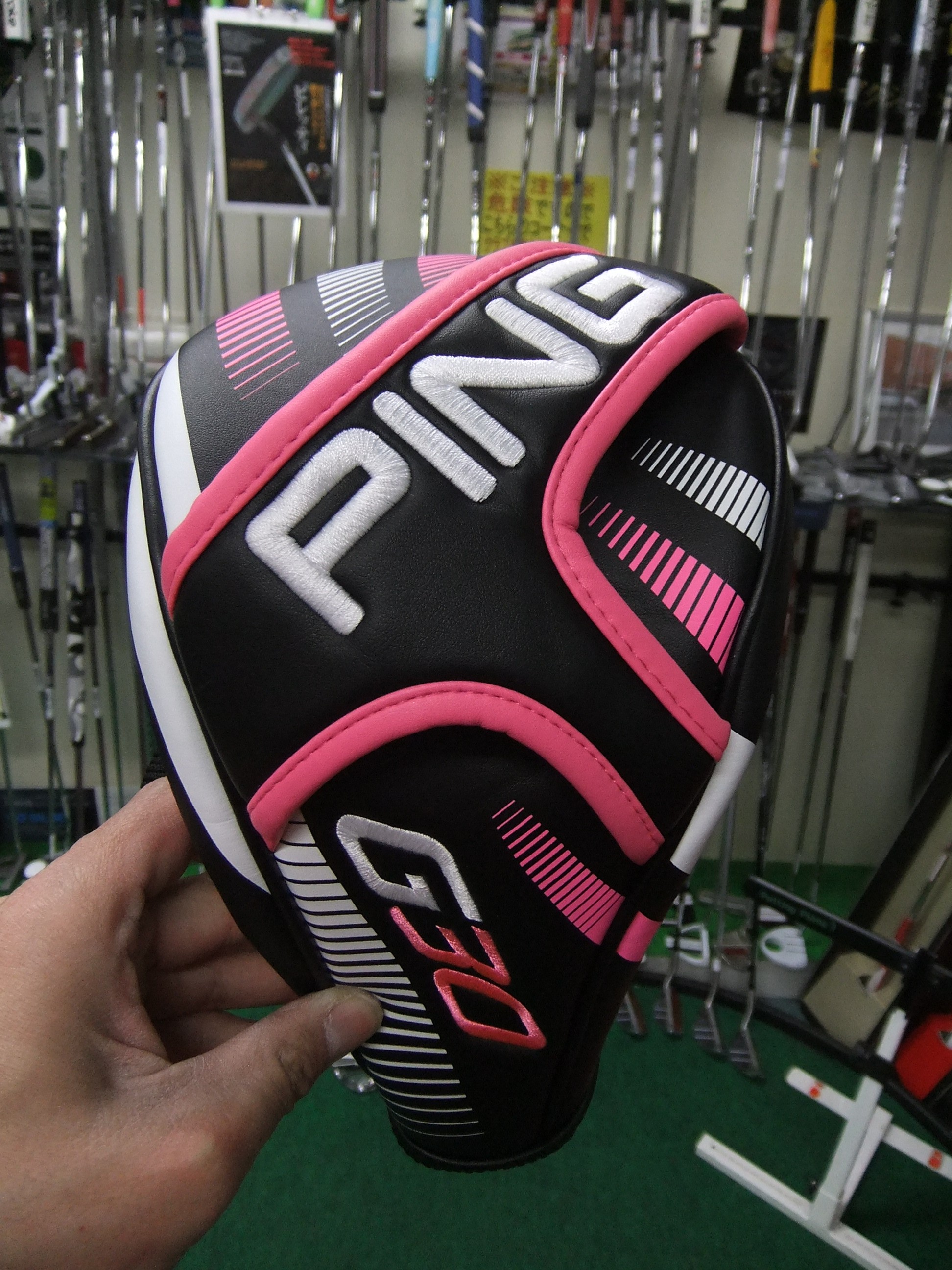 これはバッバ・ワトソン選手が使っているクラブと同じ、ピンク色をふんだんに使った色鮮やかなドライバーで、クラウンからシャフトまで、ソールやヘッドカバーの一部も、ほとんどをピンク色が占めている、貴重な一品です。