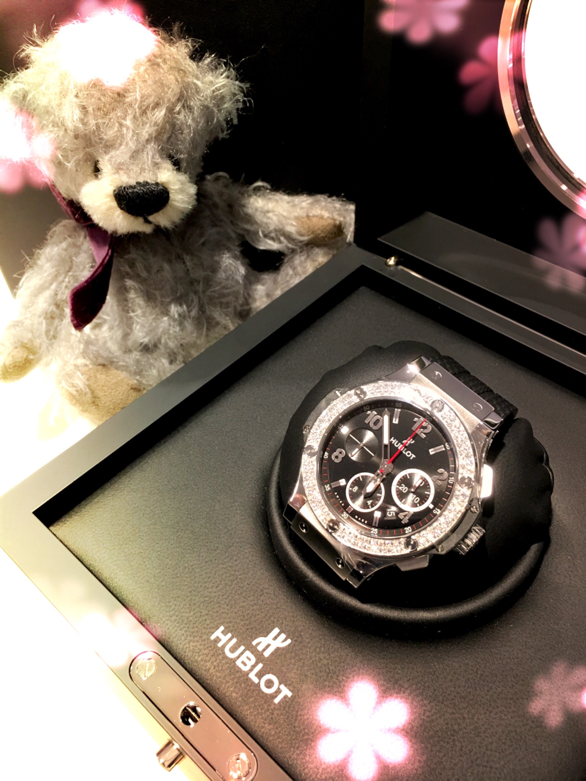 2005年に発表されてから今日まで大人気のビッグバン、新素材のケブラーが使用されており、耐熱性、耐衝撃性に優れたモデルです。それだけでなく、ベゼルには114石のダイヤがセッティングされており、ゴージャスな雰囲気を漂わせています。