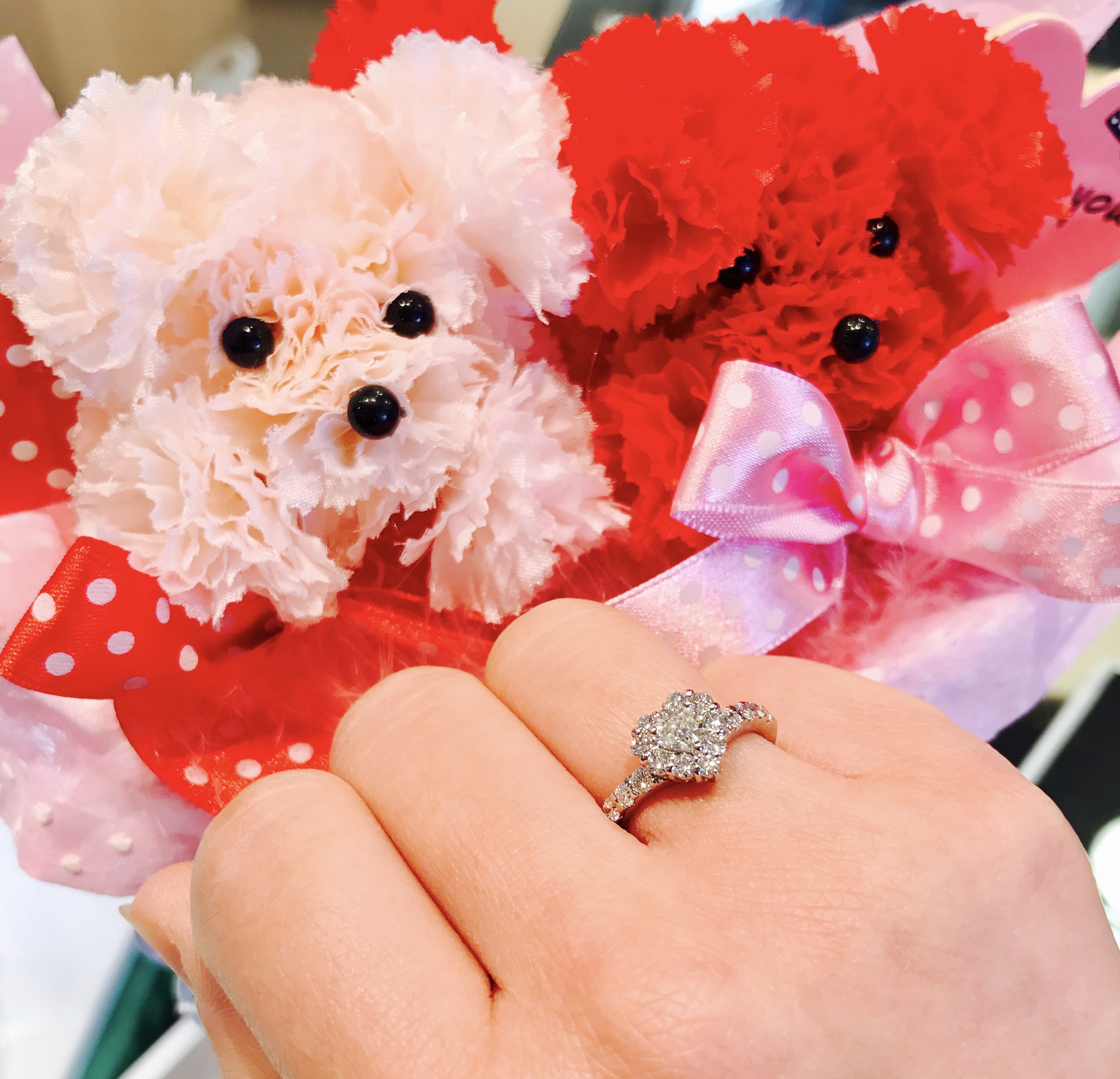本日はダイヤモンドをハートの形にカットした“ハートシェイプ”のダイヤモンドがセッティングされた、