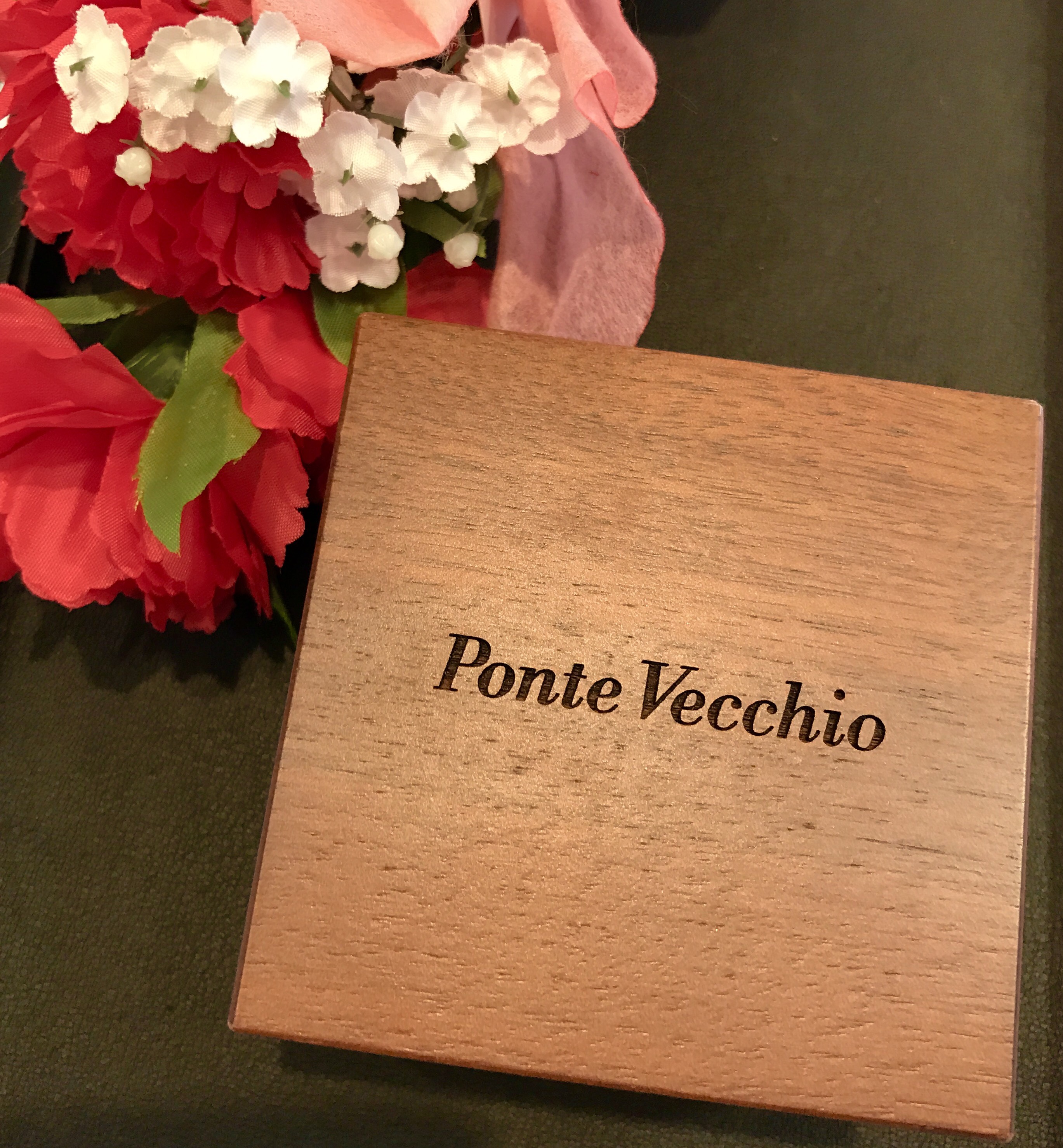 温かみのあるウォールナット材を使用したPONTE VECCHIOの特製ジュエリーケースが付いております^^♪