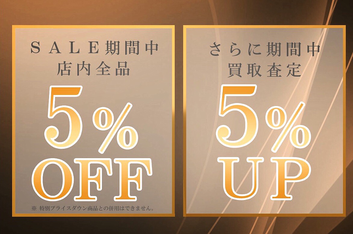 また買取もSALE期間中は査定金額5%UPとなっております。