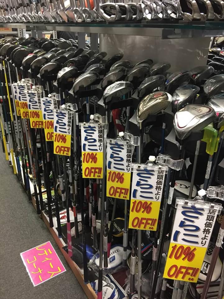 ただいまから中古クラブが全品、表示価格からさらに10%offにて販売いたします。