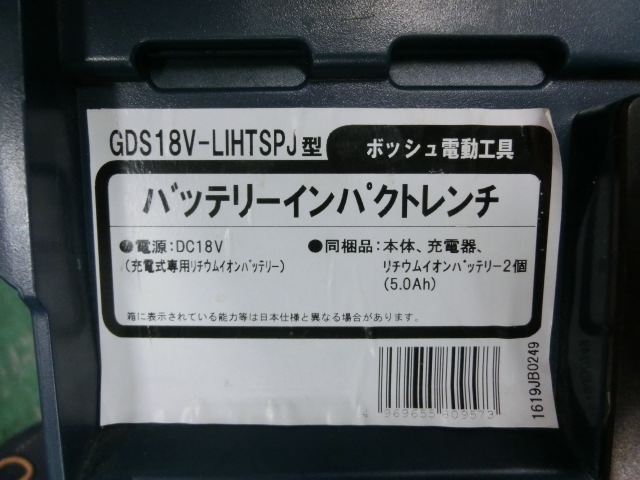 ボッシュ 18V(6.0Ah)インパクトレンチ GDS18V-LIHTS 中古美品 買取しました!