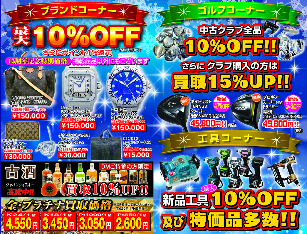 また、買い取りコーナーはお酒の買い取り10%アップ!(DMご持参)