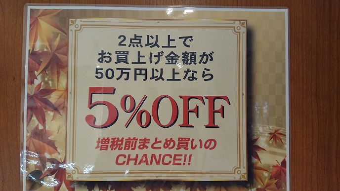 10月からの増税前にまとめ買いのチャンスです!!