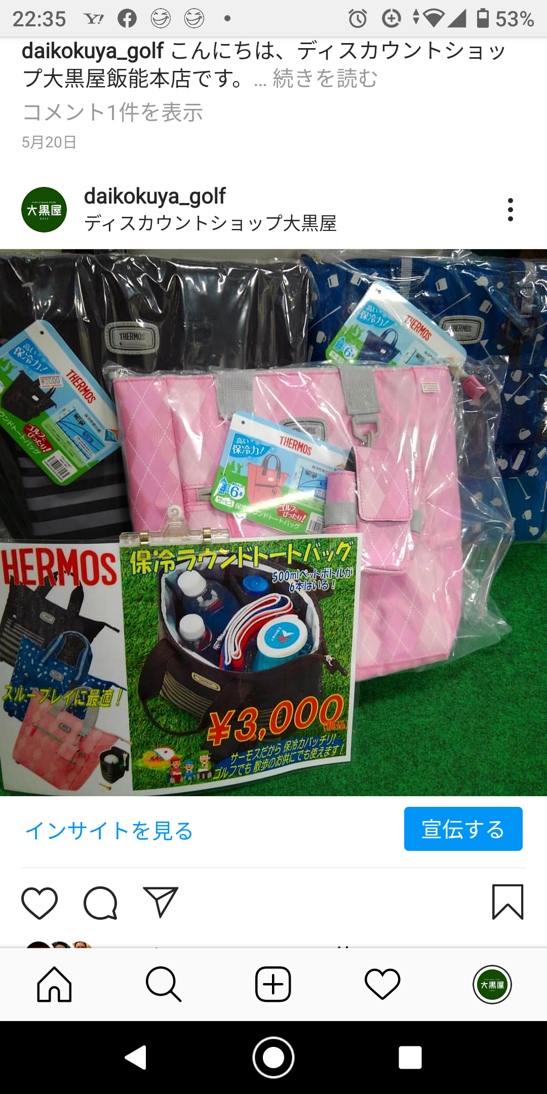 また、お買い物にも使えそうな、サーモスのゴルフ用ラウンドバッグ(ミニトートバッグ)を好評販売中です。