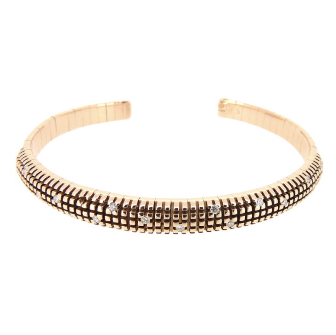一見シンプルですが、一つ一つが繊細な技術で作られており細かくとても綺麗です。また、ピンクゴールドでより上品で高級感のあるアイテムです。腕が出るこの時期にファッションアイテムとしてオシャレに合わせる事のできるアイテムです!!