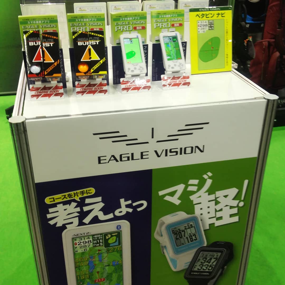 イーグルビジョンは、ゴルフ用GPSナビのヒットブランドで、ゴルフフェアでは、発売予定の最新モデル「イーグルビジョン ネクスト2」を展示していました。