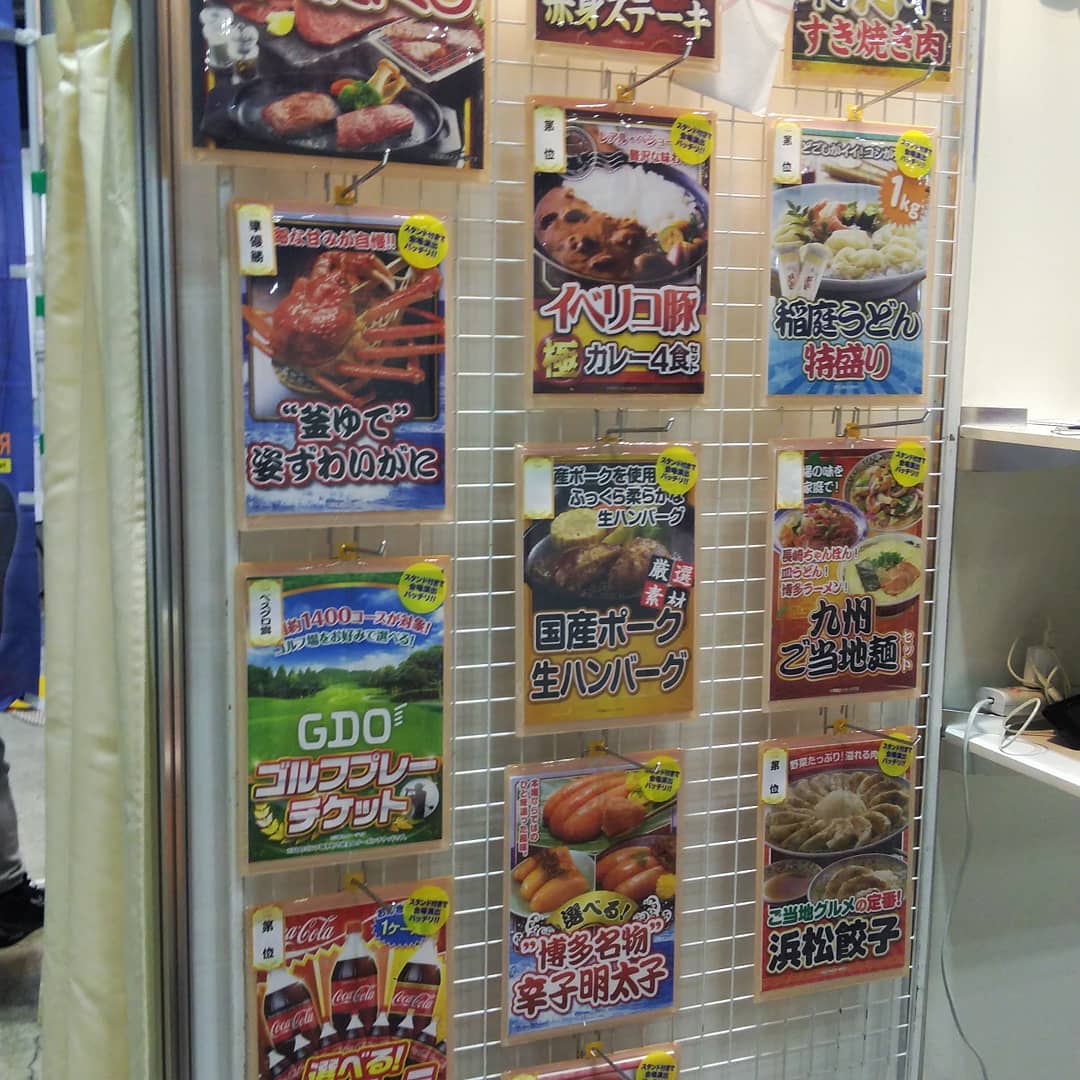 販売している景品は、当選した方が後日に宅配で受け取れるタイプなので、会場に沢山の景品を運びこむ手間が無くなります。